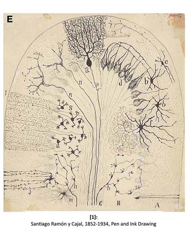 | "Key: Seeing (1, 2, 3)", 3 conceptual digital images from photographs and lab images - Detail | Santiago Ramón y Cajal - Pen and Ink Drawing | |