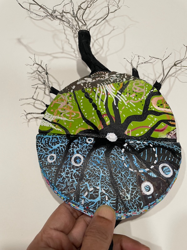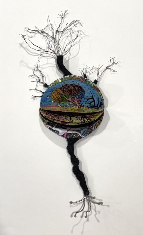 | The Neuronal Book, 2023, Book made with paper using sampled wood block prints on paper, gouache, acrylic paint and markers, thread, armature wire, plastic-coated stainless steel wire, stainless steel wire, glue dots, acrylic gel, and book binding tape, 20"x8" | ||