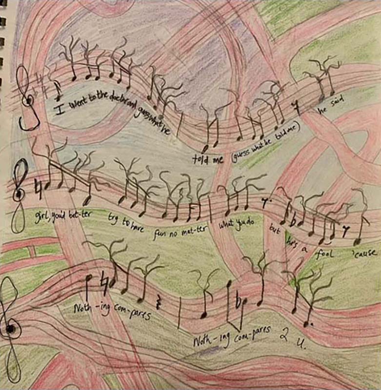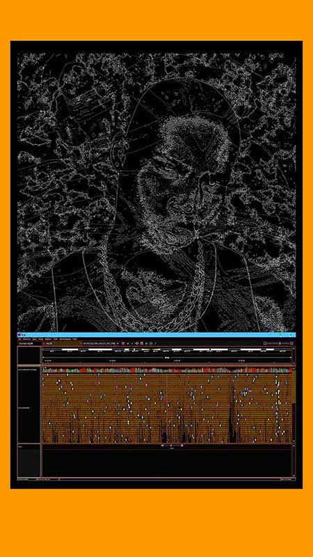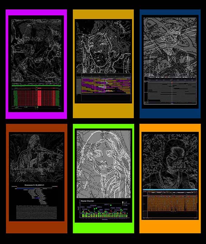 | Sampling (Sinéad, Kurt, Selena, Jimi, Dolores, DMX), 2023, an album of 6 experimental videos including digitally manipulated images of photographs and mixed-media artworks made with woodblock prints on paper, acrylic gel, gouache, acrylic paints and markers, 46s, 59s, 55s, 59s, 58s and 59s. Link To videos in Insta post | ||